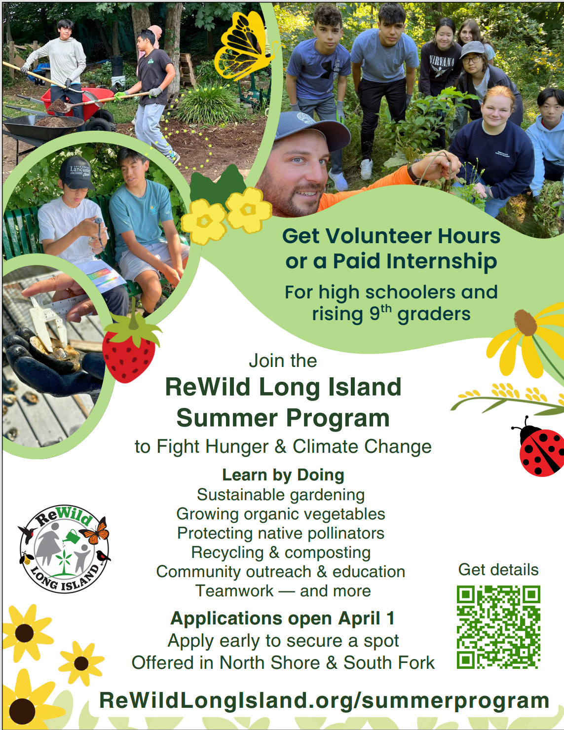 Check out all our community programs, including the Summer Program, Composting, Community Gardens, Native to Long Island, and ReWild Walks and Talks.