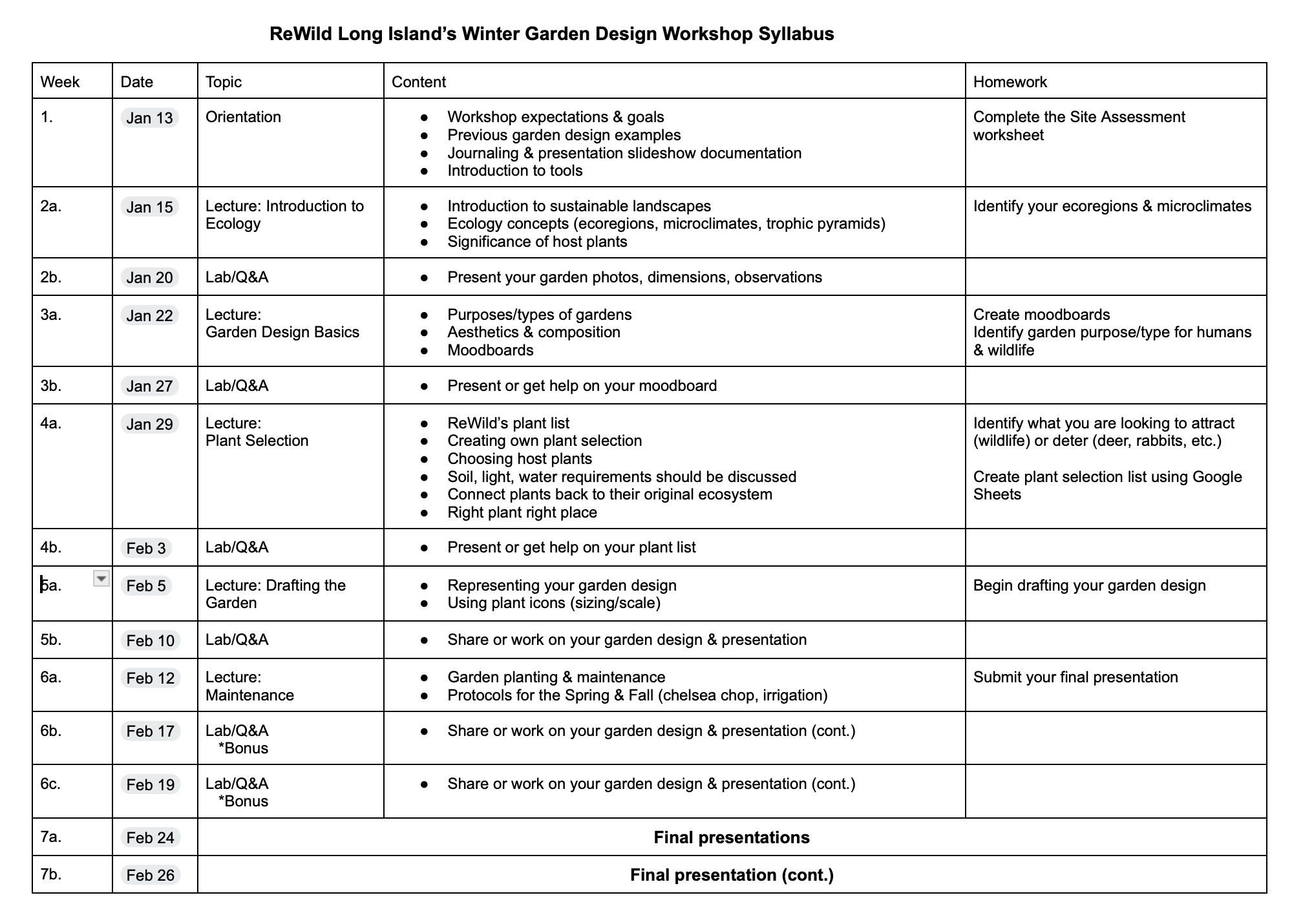 For questions about the ReWild Garden Design workshop, please email Samantha@rewildlongisland.org.