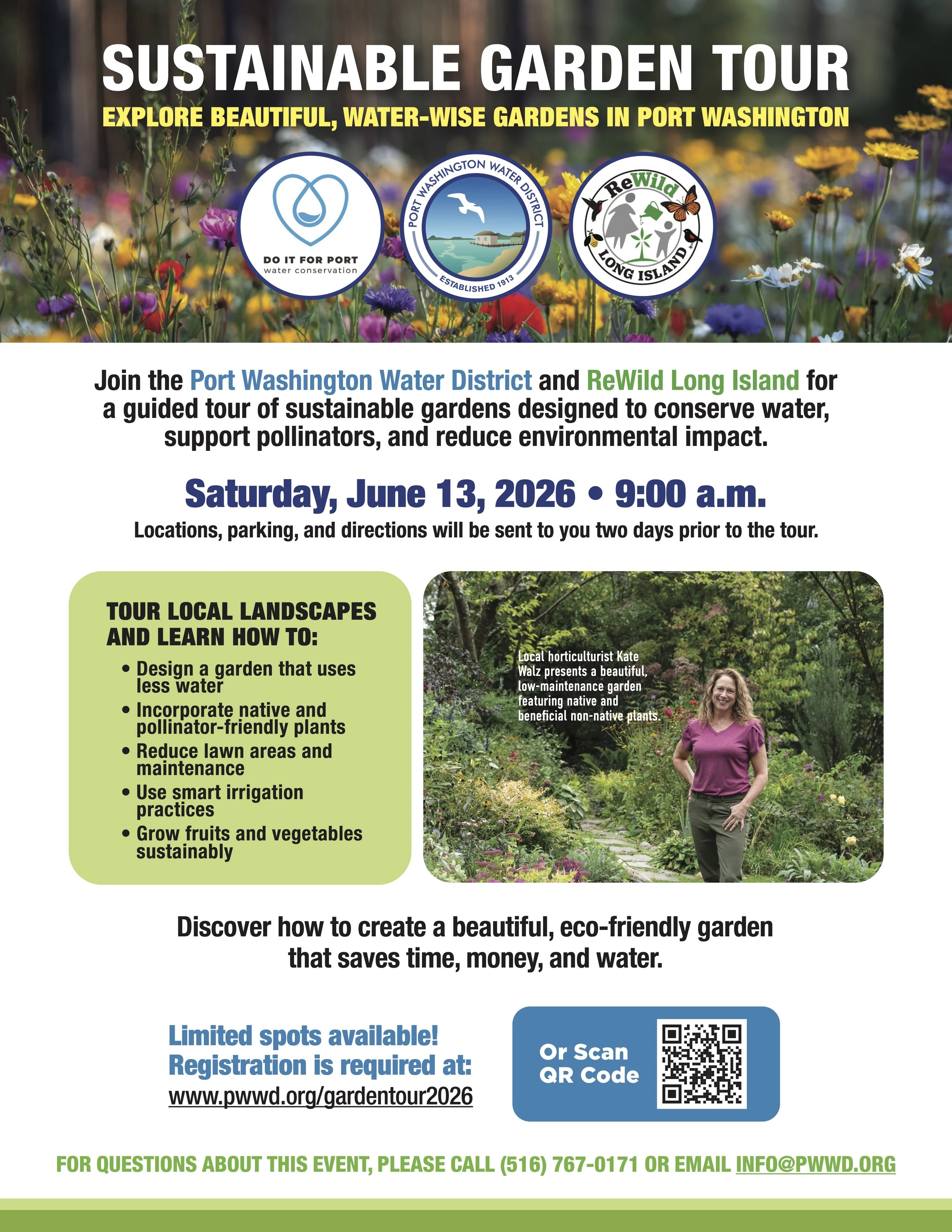 The sustainable garden tour is a collaborative effort between the Port Washington Water District and ReWild Long Island. The tour is also the first of its kind across Long Island, and is returning for the 2026 season stronger than ever. Whether it be as a registrant or volunteer, we highly encourage you to get involved and witness the natural wonder that can exist right here, at home.